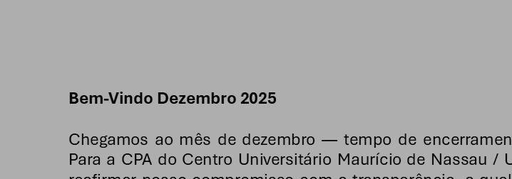 A Comissão Própria de Avaliação (CPA) informa que o prazo para a realização da Avaliação Institucional 2025.2 foi prorrogado até o dia 20 de novembro.