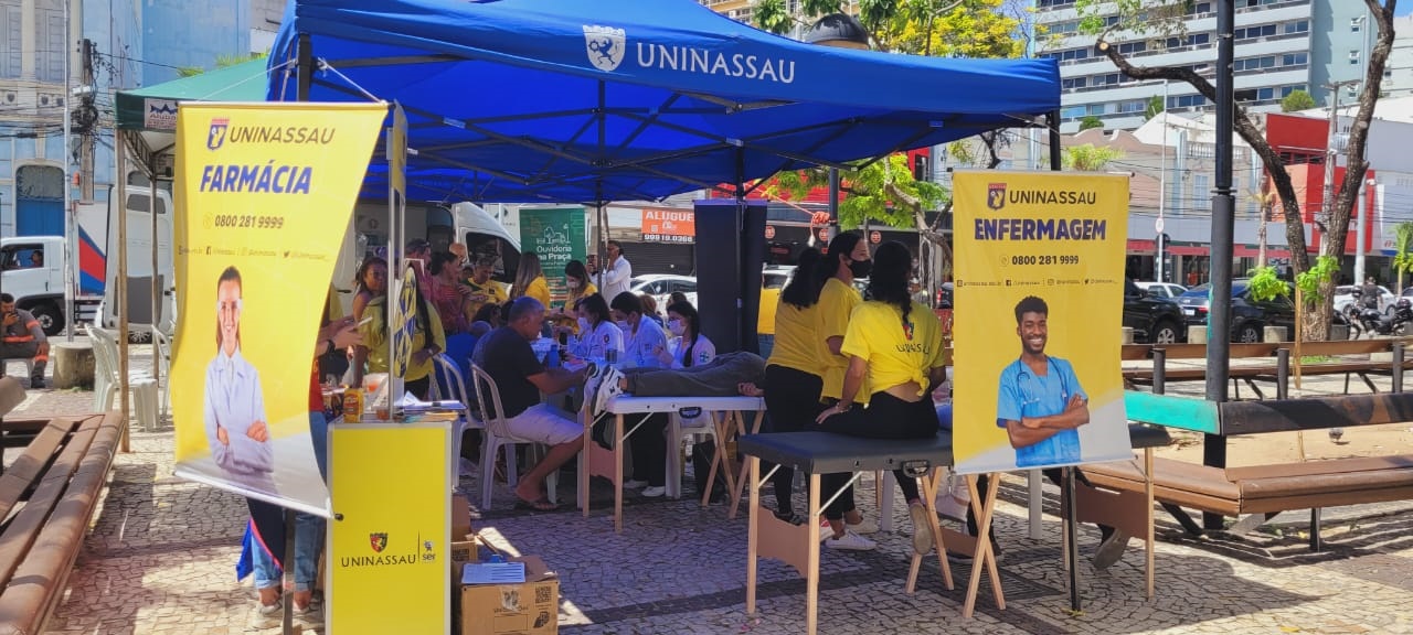 O desenvolvimento de ações na área da saúde como: vacinação, verificação de pressão arterial, orientações em relação a questões alimentares, entre outros serviços vem sendo oferecido a sociedade. Atuação de acadêmicos de enfermagem, fisioterapia, farmácia e nutrição sob orientação e supervisão dos Coordenadores e Professores dos referidos cursos vem sendo colocado em prática nos projetos da Uninassau Fortaleza, visando assim atender uma margem da população que transitam pela Praça do Ferreira, marco central da cidade de Fortaleza.