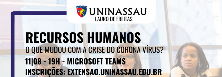 No próximo dia 11 de agosto, atualizações na área de Recursos Humanos serão debatidos em Lauro de Freitas. Com a proposta de identificar e informar a alunos sobre o que mudou com a Pandemia, professores e coordenacão vão sugerir atitudes e habilidades para adaptação a área. As inscrições já estão abertas em: https://extensao.uninassau.edu.br/DetalhesEvento.aspx?EventoId=30426