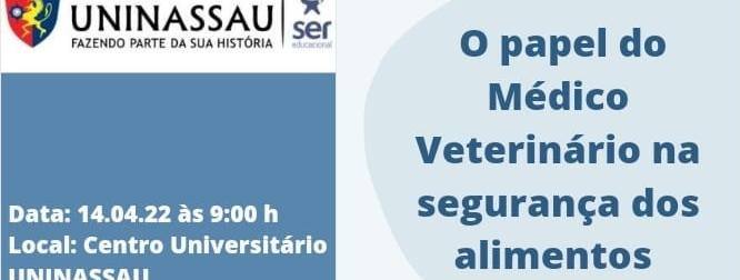 Convidamos toda comunidade acadêmica para participar da oficina profissionalizante com a médica veterinária Dra. Nathálya Souza sobre "O papel do médico veterinário na segurança dos alimentos" na unidade UNINASSAU Teresina, no dia 14.04.2022 às 09 horas.