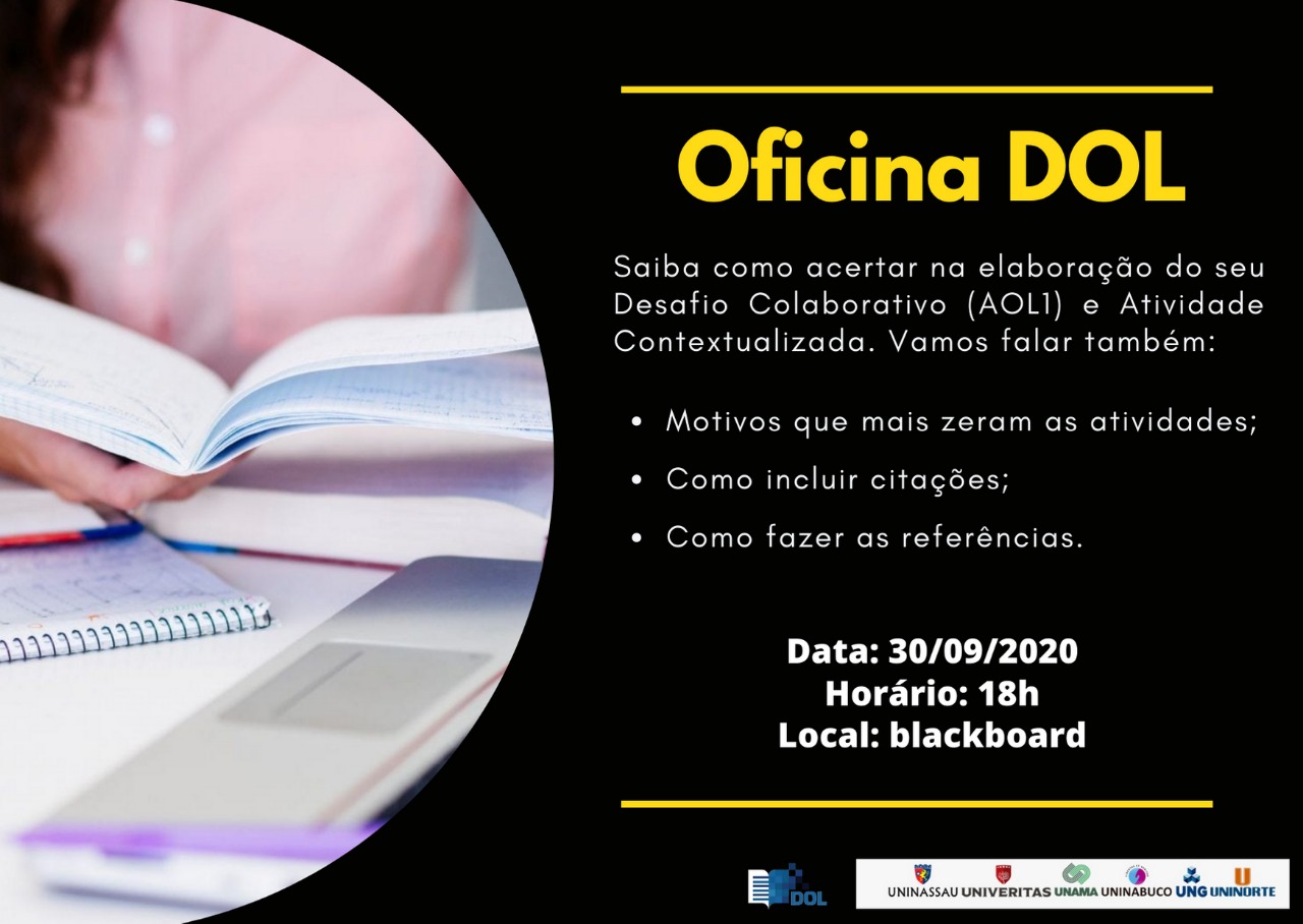 Realizaremos no dia 30/09 às 18hs, Oficina DOL sobre Elaboração de Desafio Colaborativo e Atividade Contextualizada.