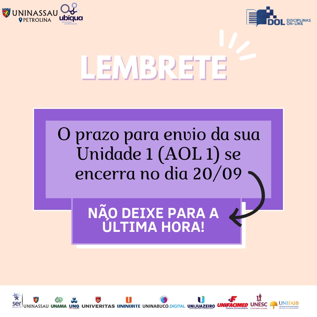 Qualquer dúvida, entre em contato com o seu professor da disciplina.