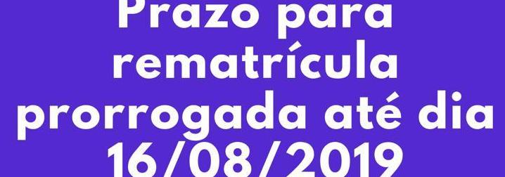 Prezados alunos, Aproveitem a oportunidade: a rematrícula foi prorrogada mais uma vez. Não deixe de renovar sua matrícula p 2019.2 sem taxa. Caso tenha alguma dificuldade, procure a coordenação.