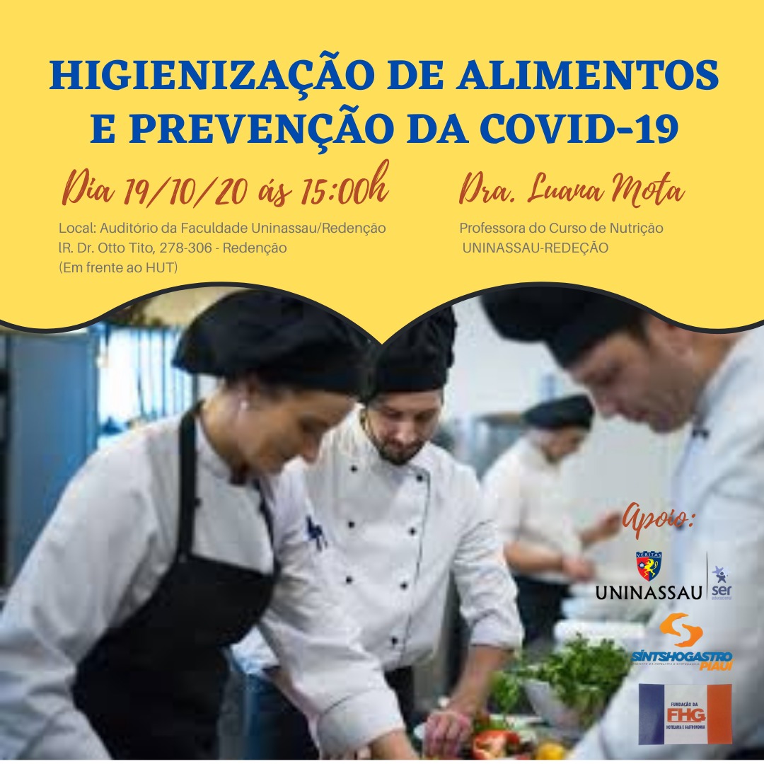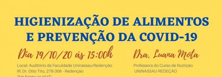 Em tempos de pandemia da Covid 19, uma das principais recomendações das autoridades em saúde é o cuidado com a higienização das mãos e dos alimentos. Com o ituíto de repassar orientações importantes sobre tecnicas corretas de higienização dos alimentos que farão parte das nossas refeições, bem como da correta maneira de higienizar as maõs dos manipuladores de alimentos, o curso de Nutrição da Unidada Redenção promoverá no 19 de outubro o workshop "Higienização de Alimentos e Prevenção da Covid 19"