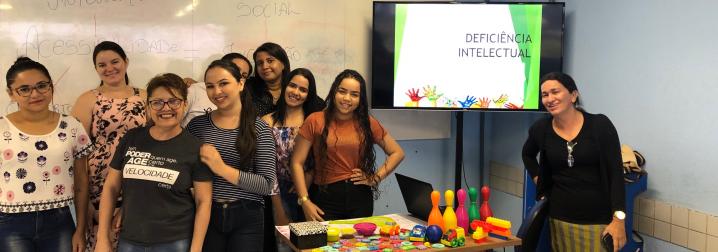 Na disciplina Psicologia e a Pessoa com Deficiência ministrada pela professora Daniele Carvalho, os alunos do 5º período do curso de Psicologia aprenderam por métodos ativos e vivenciaram a rotina de uma pessoa com deficiência visual. Apresentaram recursos de trabalho para estimulação de pessoas com deficiência intelectual e ainda explanaram conteúdos pesquisados sobre deficiência física e auditiva.
