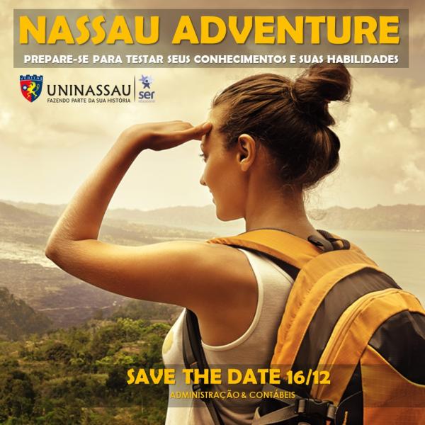 A unidade Natal, através dos cursos de Administração e Ciências Contábeis, irão promover o Nassau Adventure, neste sábado (16). O evento é voltado para alunos dos dois cursos, com o objetivo de finalizarmos o ano com atividades ao ar livre e tarefas que irão mexer com as habilidades estratégicas dos grupos participantes em cada prova durante o percurso.