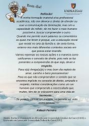 A Uninassau Fortaleza tem impulsionado a conscientização dos docentes e discentes para que se unam numa perspectiva de que, a funcionalidade dos serviços sejam conquistadas pela transparência no que consiste a real situação em que o estado e, certamente, o mundo vem passando e os esforços que a gestão da instituição tem empreendido em oferecer o que há de melhor em termos de formação profissional, buscar o equilibrio emorcional, seja por partes dos gestores, discenes, técnicos admintrativos, colaboradres, sociedade civil, entre outros, elementos que estejam direta ou indiretamente, envolvidos na unidade de ensino se faz necessário, portanto, pecisamos que cada um de nós venhamos refletir sobre o nosso comportamento e, por certo, o poder de pondrera a razão e a emoção