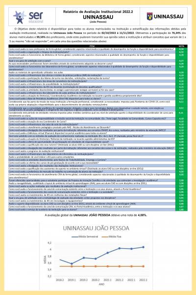 Prezados, discentes do Centro Univeristário Maurício de Nassau-JP, é com muita satisfação que divulgamos a Avaliação Institucional 2022.2.