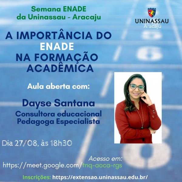 Durante a semana "ENADE" a Uninassau Aracaju desenvolve diversas ações preparatórias com todas as turmas do curso, e em destaque teremos a palestra que irá abordar o quanto é importante para a formaçao acadêmica para fortalecer e respaldar toda a intervenção de uma categoria profissional.