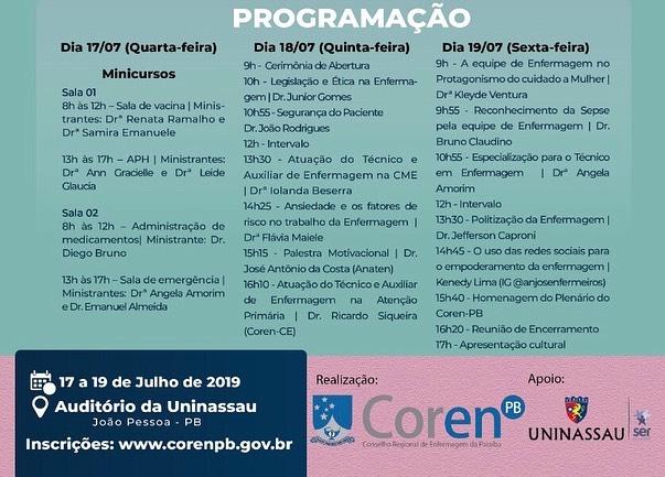 A Faculdade UNINASSAU João Pessoa recebe o I Encontro Paraibano de Auxiliares e Técnicos de Enfermagem promovido pelo Conselho Regional de Enfermagem (Coren) da Paraíba. O evento acontece entre os dias 17 e 19 de julho e as inscrições são gratuitas pelo site do Coren.
