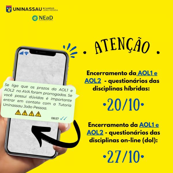 NOVOS PRAZOS DAS AOL 1 E 2 DAS DISCIPLINAS HIBRIDAS E DOL