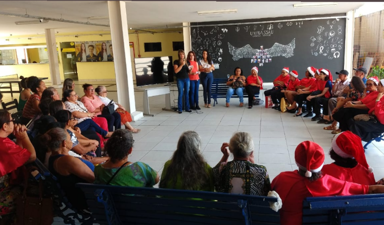 A tarde foi rodeada de emoções e sentimentos para os idosos participantes do Grupo, a confraternização relembrou um pouco de tudo que eles desenvolveram no ano, além de ter contado com a apresentação das próprias idosas participantes do projeto, cantando músicas natalinas.