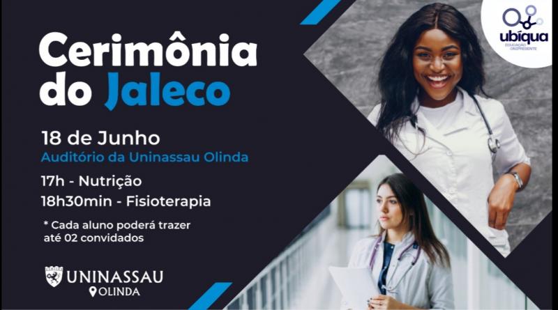 Cerimônia do Jaleco: Fisioterapia & Nutrição. O evento tem como objetivo acolher os novos acadêmicos, seus familiares e amigos; e realizar o ritual de entrega da vestimenta aos alunos, por seus padrinhos. representando o início de uma jornada e o comprometimento com a profissão. Ao final, os alunos realizarão o tradicional juramento, assumindo o compromisso de seguir as normas com responsabilidade, ética e critério. At.te: Prof. Jabson Santana - Coordenação