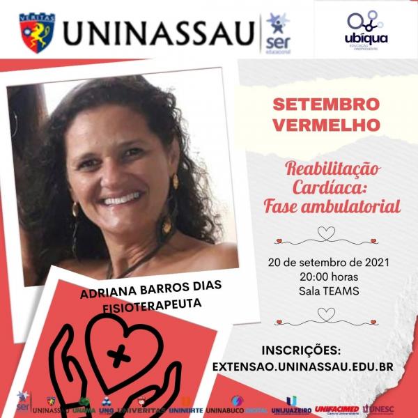 Não perca hoje nossa palestra em alusão ao setembro vermelho com reabilitação cardíaca: Fase ambulatorial