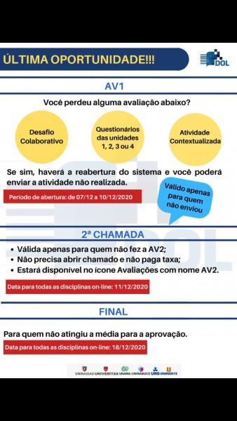 Fique atento as informações sobre as provas das disciplinas DOL.