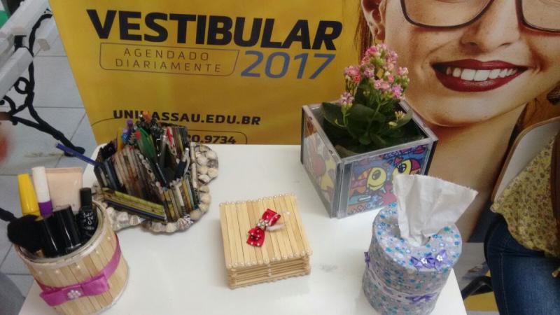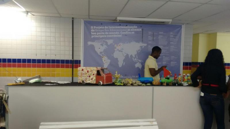 Os alunos realizaram doação de produtos reciclados para a Brinquedoteca do curso de Pedagogia, além de reservar alguns objetos confeccionados para a memória do curso CST em Logística.
