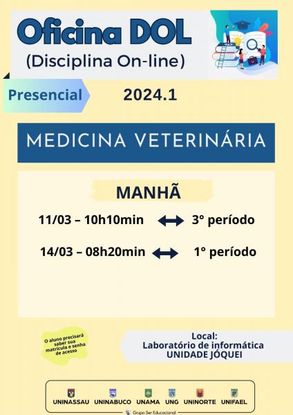 Aviso Oficina Dol 2024.1 - Medicina Veterinária / UNINASSAU Teresina