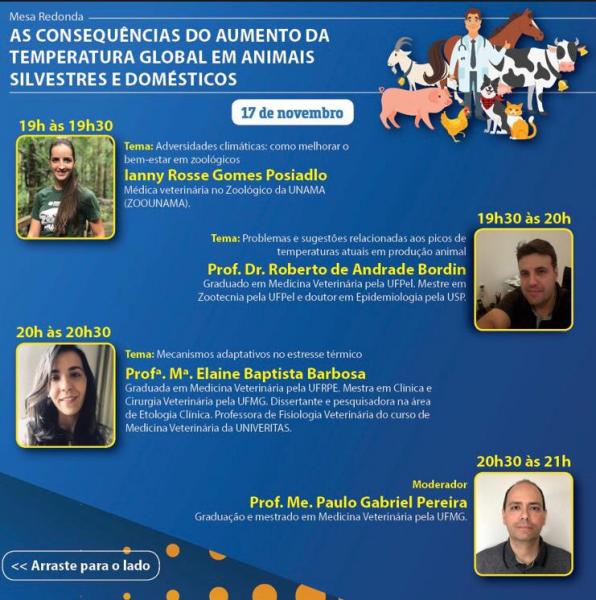 Quero convidá-los para participarem da Mesa Redonda: As consequências do aumento da temperatura global em animais silvestres e domésticos que acontecerá em 17/11/2020, no horário das 19h às 21h.