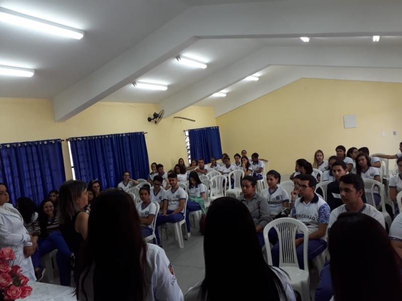 Alunas de Nutrição ministram palestras na Feira de Profissões no EREM em Panelas-PE.