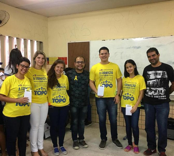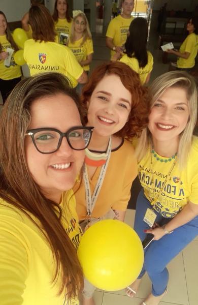 Realizamos no dia 09, 11, 21 e 26 de Setembro de 2019 ações de promoção à vida. No primeiro dia respectivamente, fizemos o ABRAÇÃO no hall da unidade. Recebemos alunos, funcionários e visitantes com abraço, desejando que ocorresse a liberação do hormônio oxitocina, conhecido como o hormônio do bem-estar. Junto com o abraço, as pessoas receberam fitas amarelos que simbolizavam a luta contra o suicídio e panfletos que orientavam quanto a números de apoio a proteção a vida e acolhimento ao sofrimento psíquico.