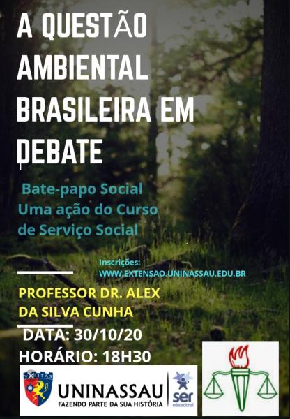 BATE PAPO SOCIAL: QUESTÃO AMBIENTAL BRASILEIRA EM DEBATE, ESSE É O TEMA DE NOSSA DISCUSSÃO NO DIA 30/10/2020. O SERVIÇO SOCIAL UNINASSAU PARNAÍBA QUER FALAR SOBRE QUEIMADAS, DESMATAMENTO E POLÍTICAS GOVERNAMENTAIS. PARTICIPE VOCÊ TAMBÉM!