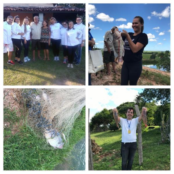 No último dia 25 de abril, os alunos de Gastronomia tiveram uma vivência prática no municipio de Cruz do Espirito Santo, numa fazenda de tilápia. A fazenda Santa Luzia, do Sr. Gilbertinho e de Dona Lúcia foi aberta para os alunos do primeiro período, durante a disciplina de Habilidades Básicas de Cozinha. Na ocasião, os estudantes conheceram todo o cultivo da tilápia, pescaram, aprenderam a filetar o peixe e, por fim, se deliciaram com uma peixada feita pelo professor Filipe Tavares. Esse tipo de vivência é muita rica, pois faz com que o discente saia da sala de aula e, com isso, torne o processo de ensino aprendizagem mais rico.