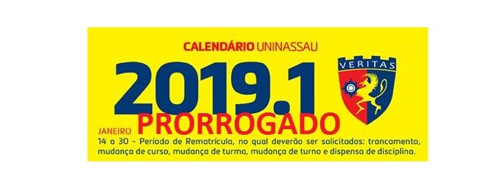 A Uninassau Recife, anunciou nesta quinta-feira (14), a prorrogação da matrícula para alunos retardatários. Por esta razão, as aulas para alunos novatos que iniciariam as atividades no dia 19, foi transferida para o dia 26. Segundo Graça Lopes, líder de atendimento do CRA(Central de Relacionamento com o Aluno), “as matrículas vão até o dia 28 pelo portal. Neste caso os alunos não precisarão pagar a taxa de retardatário, mas se caso o estudante perder o prazo, a renovação da matrícula só poderá ser feita no CRA por meio da abertura de chamado”. Para mais informações, os alunos podem ligar para o telefone 3413-4611.